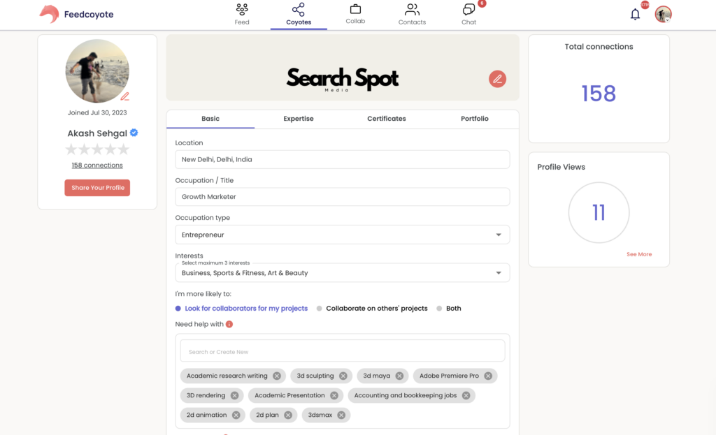 What’s Next? With your powerhouse profile now fully optimized, you’re ready to engage. In Part 4 of the Feedcoyote Scoop, we’ll guide you through the art of actively finding and successfully initiating your first collaboration on the platform. Stay tuned – your next big project awaits!